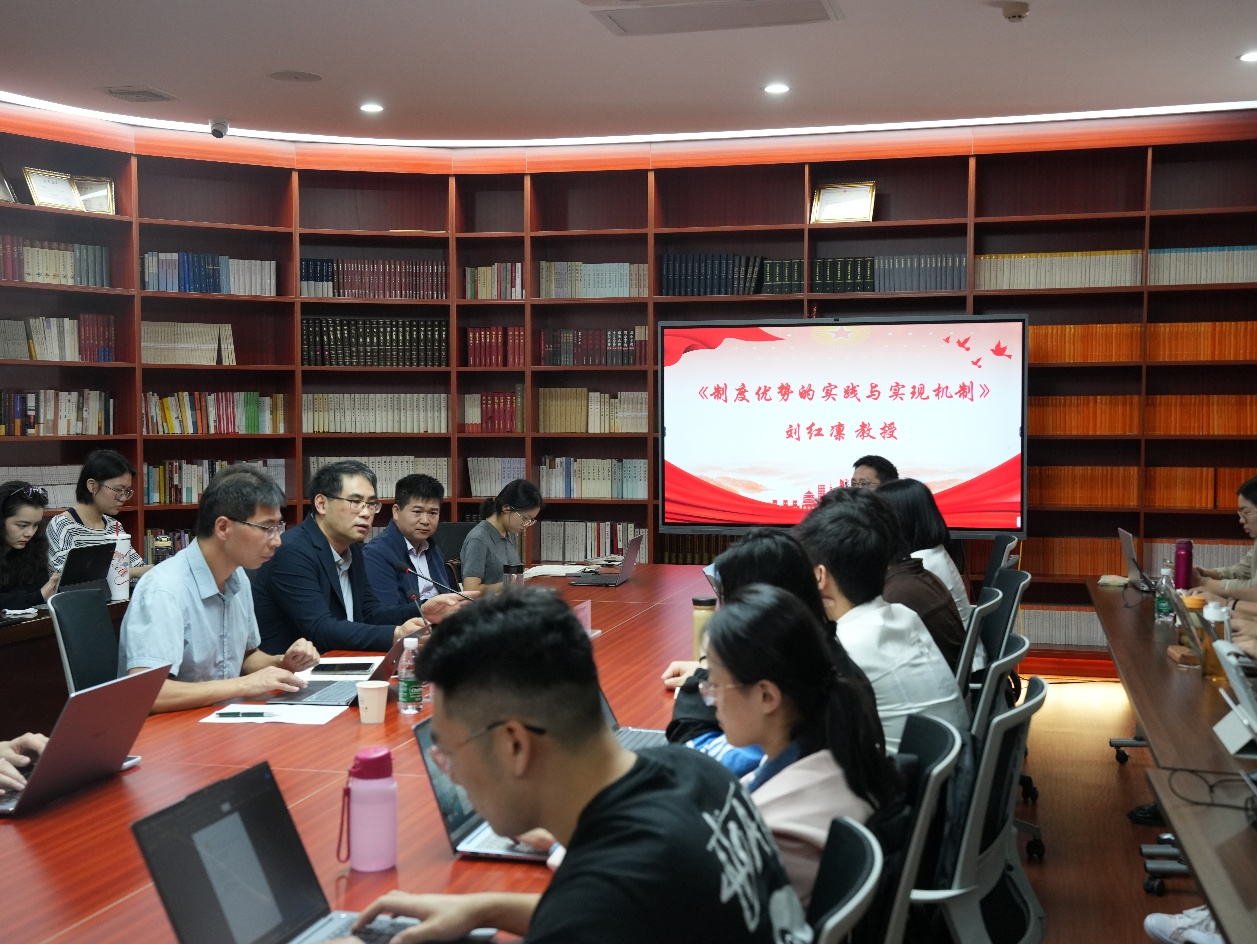 2025年11月6日下午,中山大学马克思主义学院“中国道路与文明发展论坛”系列讲座第一百二十二期于中山大学南校园文科楼310会议室举办。复旦大学特聘教授、中共党史党建研究院院长、党内法规研究中心主任刘红凛教授作题为《制度优势的实践及实现机制》的学术讲座。本次讲座由中山大学马克思主义学院院长沈成飞教授主持。