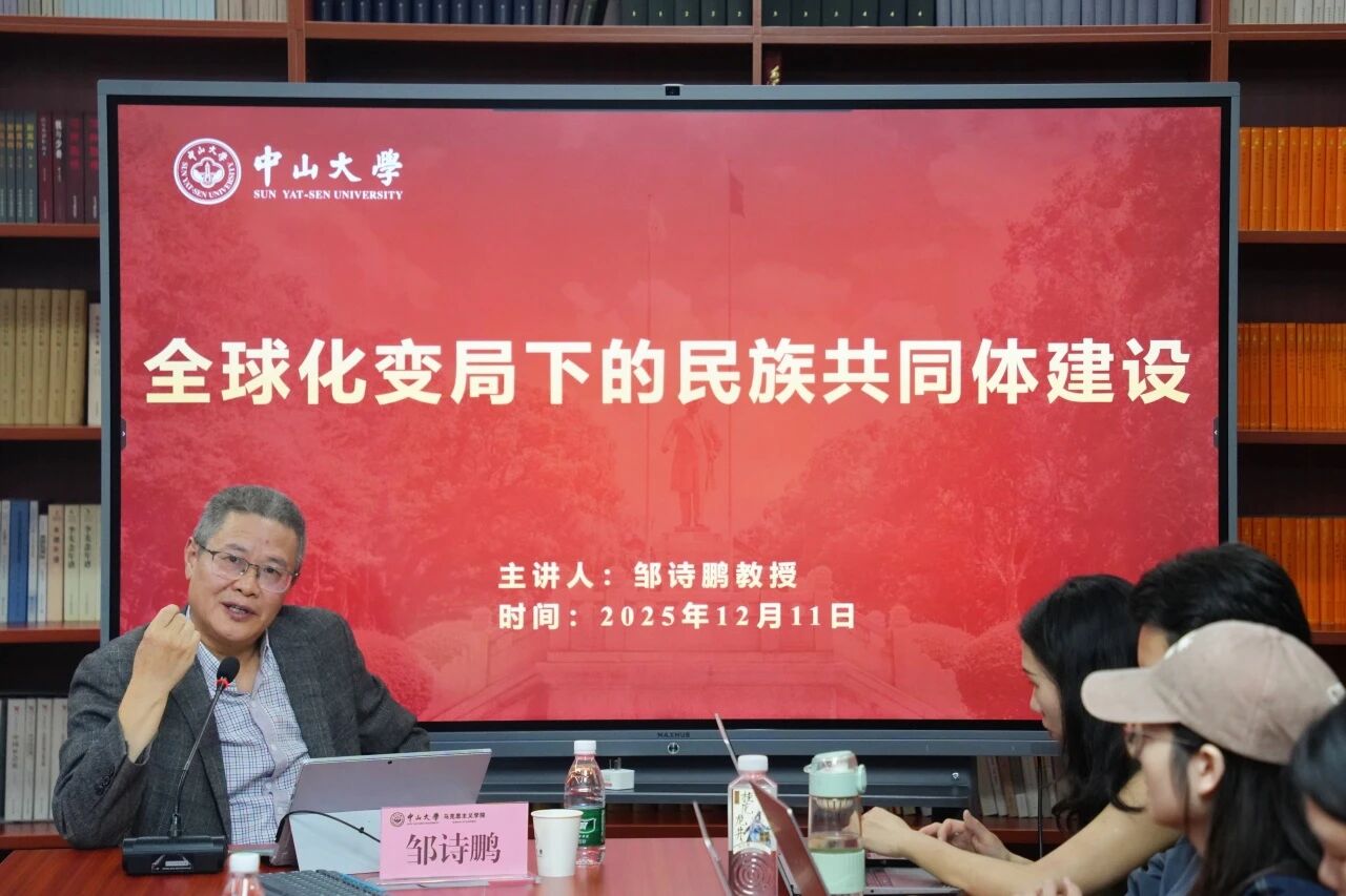 2025年12月11日下午,中山大学马克思主义学院“马克思主义理论前沿名家论坛”系列讲座第二期于中山大学南校园文科楼310会议室举办。本次讲座由复旦大学哲学学院教授、长江学者特聘教授邹诗鹏主讲,中山大学马克思主义学院教授黄学胜主持,校内外师生代表到场参与交流。
