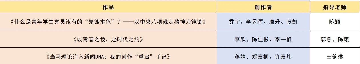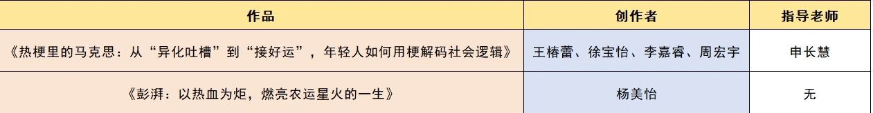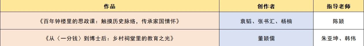 为深入学习贯彻习近平新时代中国特色社会主义思想,发掘新时代具有育人价值的思政资源,激励青年在中国式现代化建设中迎难而上,携手开创新时代思政教育新局面,中山大学马克思主义学院于2025年组织开展了首届“新时代之声”思政类原创稿件创作比赛,最终评选出9个优秀作品。现将获奖名单公示如下: