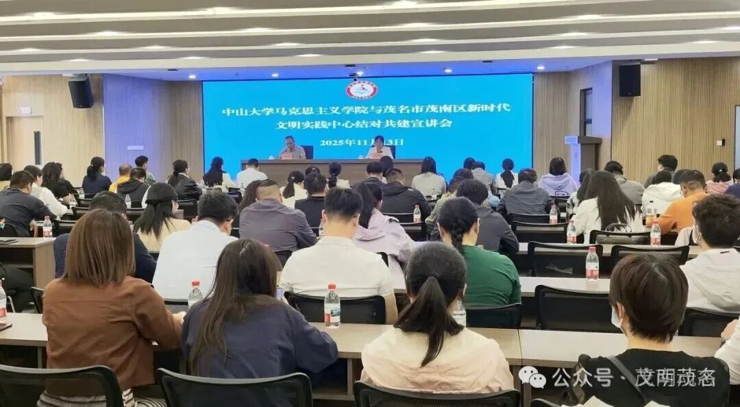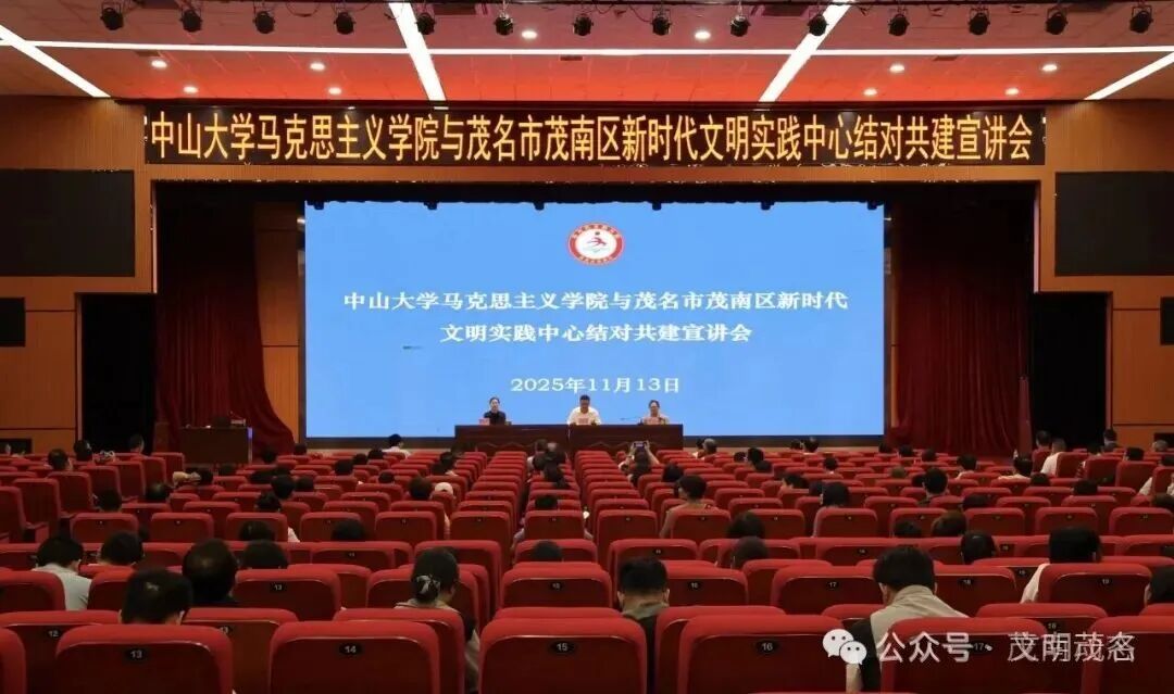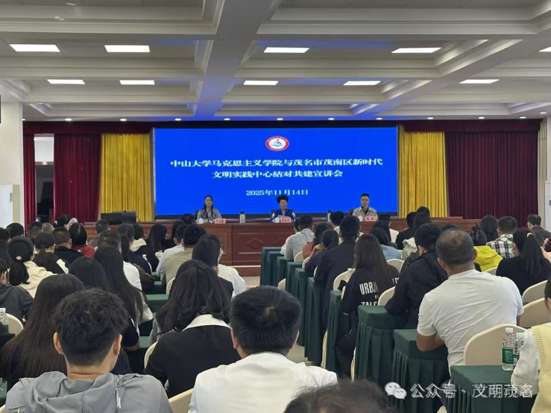 11月14日上午,中山大学马克思主义学院与茂南区新时代文明实践中心结对共建宣讲会在金塘镇举行,以理论宣讲凝聚基层发展合力,推动党的创新理论落地生根。