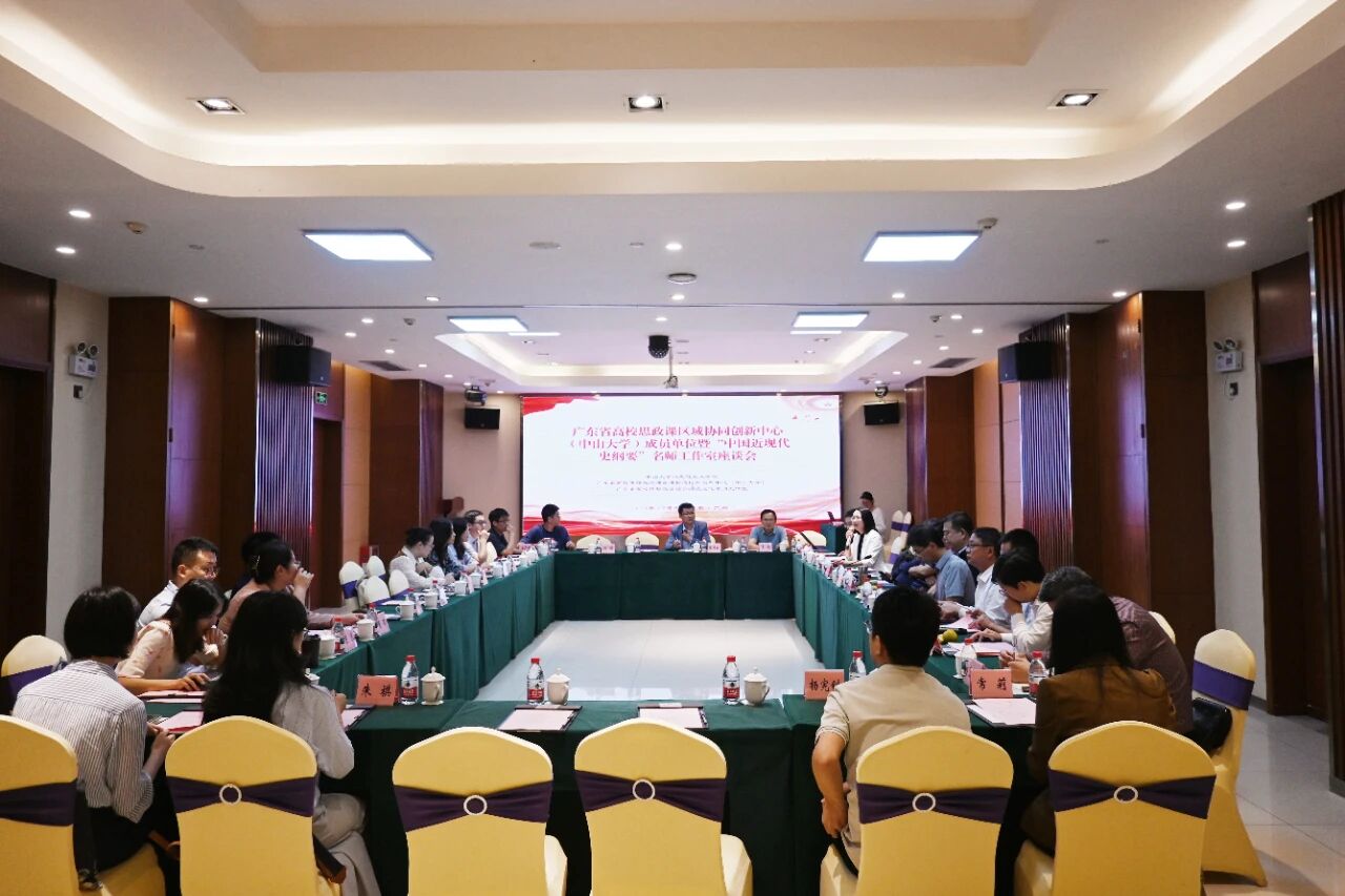 2025年11月9日下午,广东省高校思政课区域协同创新中心成员单位暨“中国近现代史纲要”名师工作室座谈会在广州广轩大厦四楼多功能会议室举行。会议以“‘中国近现代史纲要’教学的新趋势与新实践——以抗战史为例”为主题,由中山大学马克思主义学院纲要教研室主任姜帆教授主持。南开大学、华南理工大学、广东外语外贸大学、广州商学院、新华学院等高校的专家学者参加会议。与会专家从史料辨析、教学方法、现实启示等维度,共同探讨了如何将抗战史研究的最新成果有效融入中国近现代史纲要课教学。