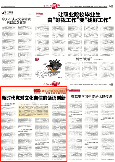 2021年12月16日,《羊城晚报》第A8版刊发我院罗嗣亮教授文章《新时代党对文化自信的话语创新》。