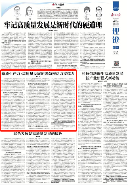 2024年2月18日,《南方日报》第A09版刊发我院胡莹教授的文章《新质生产力:高质量发展的强劲推动力支撑力》。