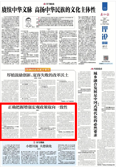 2024年11月3日,《南方日报》第A05理论版刊发我院助理教授徐世长文章《正确把握增强宏观政策取向一致性》。