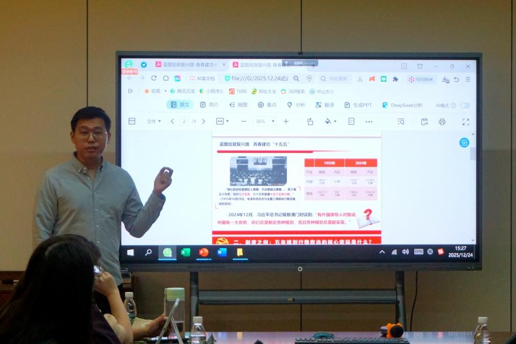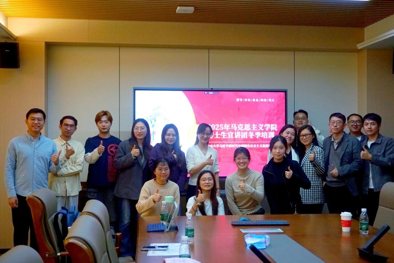 2025年12月24日下午,中山大学马克思主义学院博士生宣讲团冬季培训会顺利举行。本次培训旨在提升成员理论宣讲水平,加强宣讲队伍建设。学院党委副书记郭燕,指导老师邓华、朱祺、刘勇,以及宣讲团10余名新老成员共同参与。